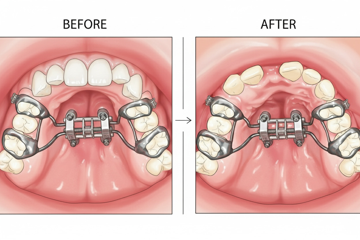 - 審美性の向上(バッカルコリドーの改善): 笑顔の際に歯列と口角の間にできる「バッカルコリドー(黒い隙間)」が広すぎる場合、歯列の幅を広げることで、より華やかで自然な笑顔に近づけます。